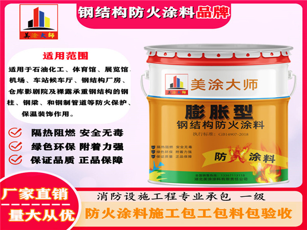 室外超薄型钢结构稷山防火涂料是一种由复合材料、阻燃材料、防火填料等组成,并选用最新型的阻燃剂、发泡、发炭、催化剂等加工而成的新型稷山防火涂料。该涂料涂层薄、用量少、耐火时间长,粘结力强,耐候、抗冲击、耐冻融性好。并具有较好的耐化工大气腐蚀性,涂层遇火时迅速膨胀增厚,形成发泡致密、均匀的隔热层,延长了耐火时间,从而达到防火保护作用。耐火时间根据等级不同可达0.50 h -2.00 h不等。
